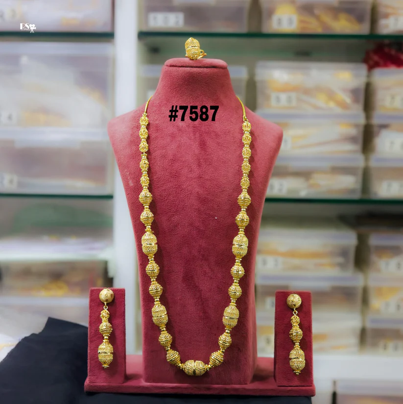 Browse through our curated collection of elegant gold plated long necklaces at Poojamani. These pieces are perfect for adding a sophisticated touch to any outfit, whether you're attending a special event or elevating your everyday look. Crafted with precision, each necklace offers a timeless shine and lasting quality.