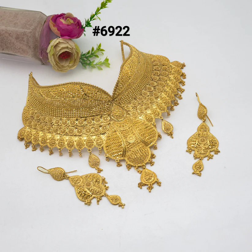 Elevate your bridal look with our exquisite gold plated wedding necklace, a stunning piece designed to add a touch of elegance to your special day. The royal gold plated necklace features intricate detailing that captures the essence of luxury, making it the perfect accessory for any bride. With its timeless beauty and opulent finish, this luxury gold plated necklace will surely be cherished for years to come, symbolizing the love and commitment of your union.